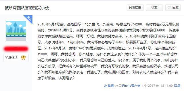 “隔壁的高市都比定兴便宜,可选的楼盘也多,买定兴不如买高碑店,况且人家还是70年产权,定兴只有50年”。
