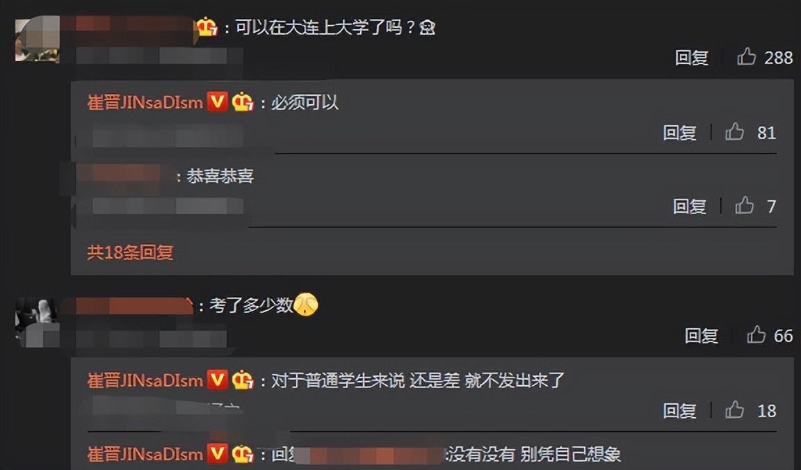 李勒优高考成绩已出,崔晋发888红包庆祝,比预估分高出很多