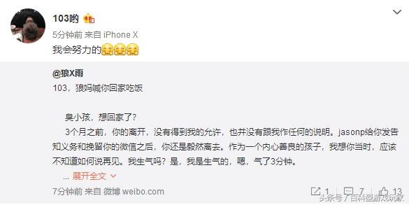 辗转三个月,三个月没上场比赛之后,原天禄战队103发表长文,向天禄战队队员道歉,希望重新回到天禄战队。103声明发布不久,天禄战队的狼雨就做出回应。