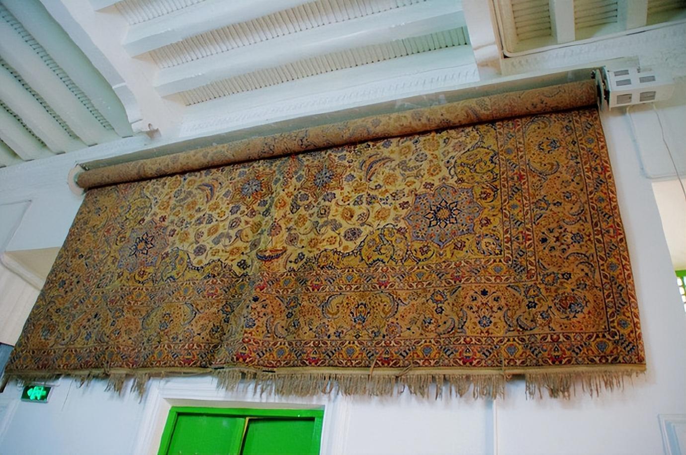 这块真丝毯子就是伊朗宗教领袖霍梅尼先生,专门为艾提尕尔清真寺定做的。 全世界只有这一块。