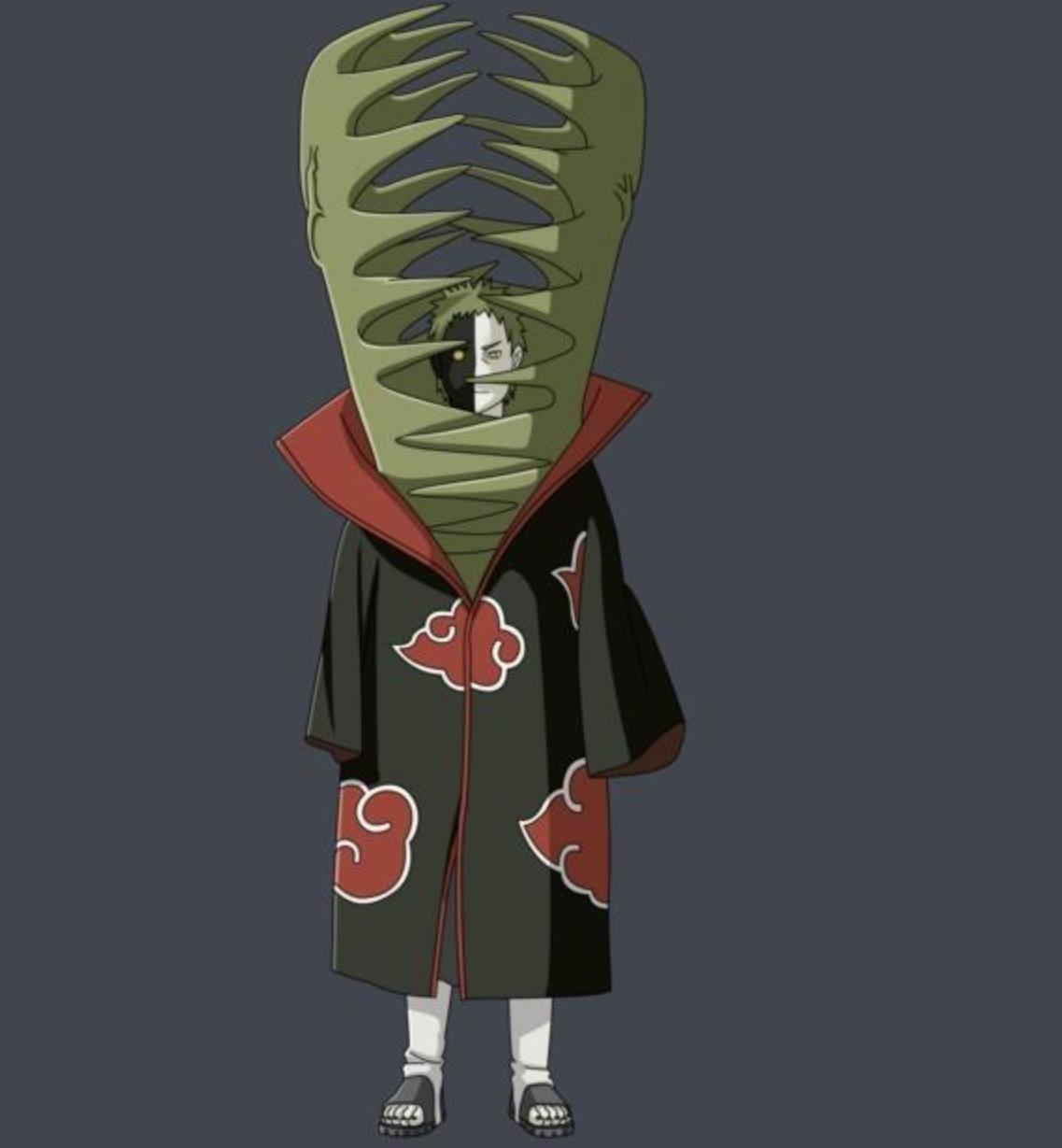 角都,原泷忍者村精英成员,“晓”成员之一。飞段的搭档,拥有秘术“地怨虞”,能通过利用查克拉操控体内释放的黑色触手,从而夺取他人的心脏。包括自己的心脏,体内最多能够储存五个心脏,通过更换心脏来延长寿命,被称为“与天地同寿之人”。每个心脏都能变为用地怨虞形成的黑体怪物,其怪物能使用原心脏主人的术。其中有一颗心脏被卡卡西的雷切摧毁,一颗心脏被鹿丸用计摧毁,两颗心脏被鸣人的风遁.螺旋手里剑摧毁,最后一颗心脏被旗木卡卡西的雷切摧毁。