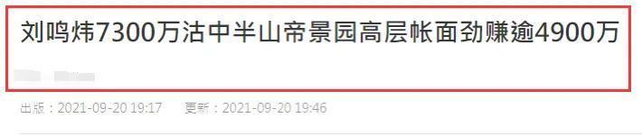 此时,刘鸣炜也做出了同样的举动。刘鸣炜出手的这套豪宅位于中半山,持有17年的时间,升值了大约两倍,最后以7千多万的价格出手。