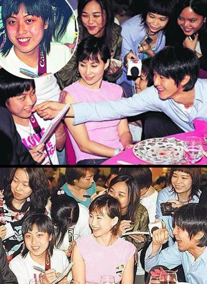 2001年少林足球的庆功宴上,周星驰公开越过众人,去跟小记者甘比贴脸。
