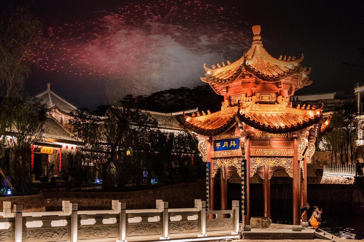 德明古镇,是一座以元曲文化为主的特色小镇,一条清澈的小河穿镇而过,风光秀美,小镇里可以看到很多古色古香的建筑,桥楼榭亭设计精巧、古朴典雅,很有江南水乡的韵味,晚上灯火辉煌,非常漂亮。