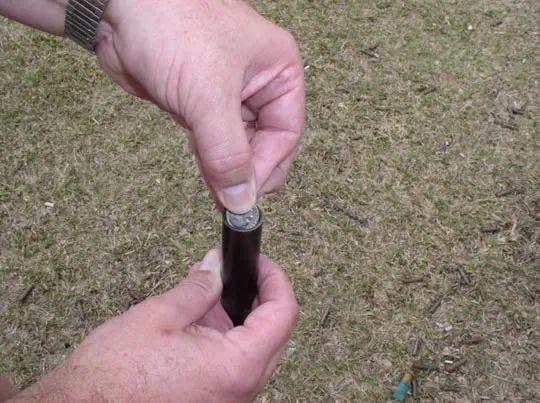 首先我们要做一点安全准备工作,拿一枚10美分硬币,从枪口丢进去,如果能顺利掉进枪管里面,那证明你的喷子是没有喉缩的。这一点很重要,如果你的喷子有喉缩,那....运气好的话你就换一把枪...运气不好就.......