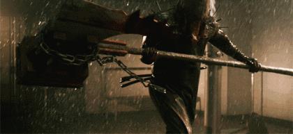 (《生化4》里面爱丽丝用硬币喷子打巨斧男)