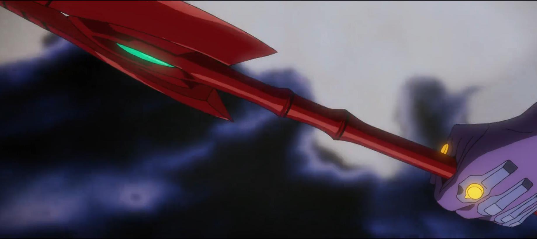在与父亲驾驶的13号机的战斗中,通过强大的AT立场直接恢复下半身和左臂,并且抢夺过一支代表毁灭的弑神枪:朗基努斯之枪。之后在初号机手中变成代表希望的卡西乌斯长毛