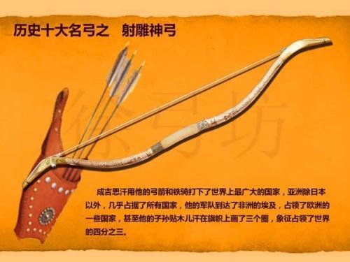 读过世界史的小伙伴都应该知道,有人开过一个玩笑,假如成吉思汗和拿破仑在同一个时代,一个向西打一个向东的,那么世界统一是指日可待的,这也侧面的说明了这两个人天才般的军事能力,而是射雕神弓就是成吉思汗的武器之一,他凭借着一把弓和身后的无数铁骑,征服了大江南北。