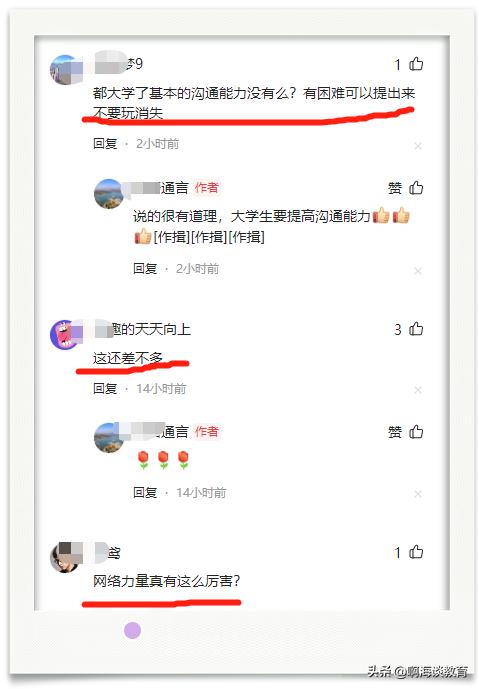 没有想到重庆交大一纸退学通知书,再加上网络上的争议;胡同学就悄然现身了,说明他不是失联了,而是故意躲起来了,也一直在上网。至于为什么不上网课,掐断所有的联系目前不得而知,他重新联系学校,说明他还准备上学。至于前面一系列的表现,个人认为他应该出现了一定的心理障碍了,对于自己的前途有点迷茫了。