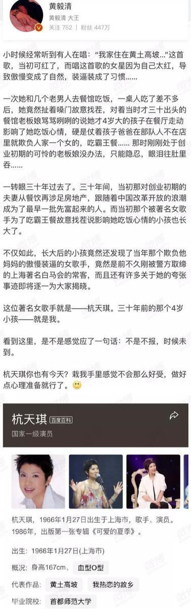 虽然这一事件杭天琪未再做出回应,事情真假尚无定论,但这一沸沸扬扬的事件也极大的打击了这位曾经的歌坛一姐。