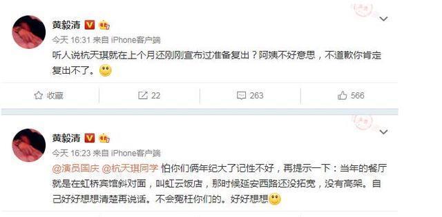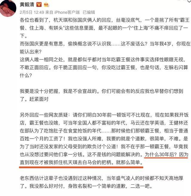 对于为什么要选择在这个时间爆出这些料,黄毅清也大方回应:自己是为了当时还没有发家的父母受到的欺负讨个公道。为什么是现在?因为直到现在杭天琪才被抓住去白马会的把柄。