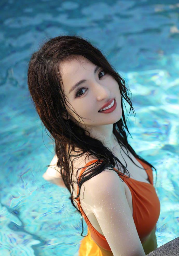 橙色深V泳衣满身黑头,长发靓丽又挑衅。
