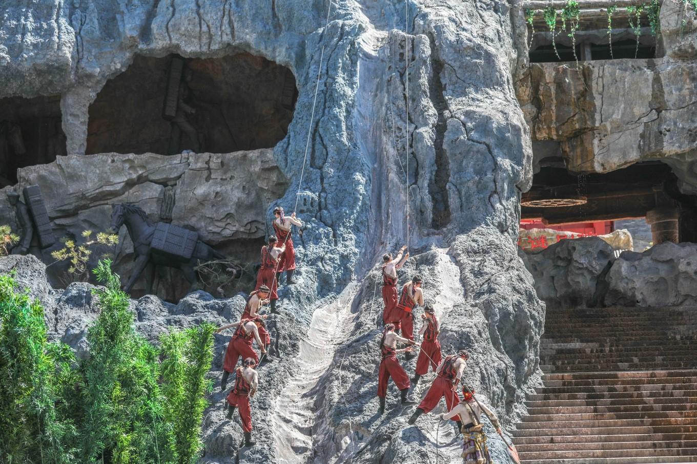 最震撼的是《 丽江 恋歌》采用的是大型实景风雨剧场,在剧场可以亲眼目睹火山顷刻喷薄出十几米高的火焰;看健壮的藏族小伙勇攀火山,凿破巨石,掀起滔天巨浪,救民众于水火之间,一切的一切都无比的震撼,看完之后心情久久不能平复。