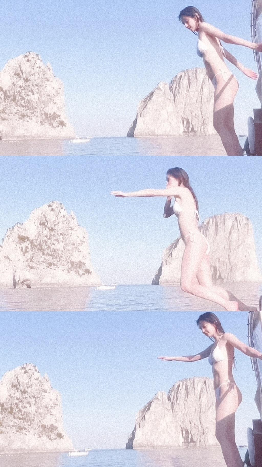 Angelababy穿着比基尼跳海