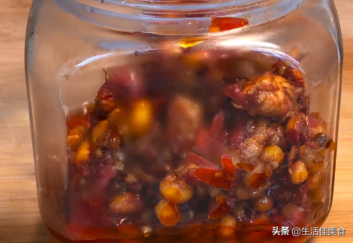 第九步:一直熬到汤汁上面都是油,就说明水分全部熬出去了,就可以直接关火出锅了,然后将其自然的冷却放凉,放到干燥的罐子里面盖上盖子密封好之后放冰箱冷藏就可以了。