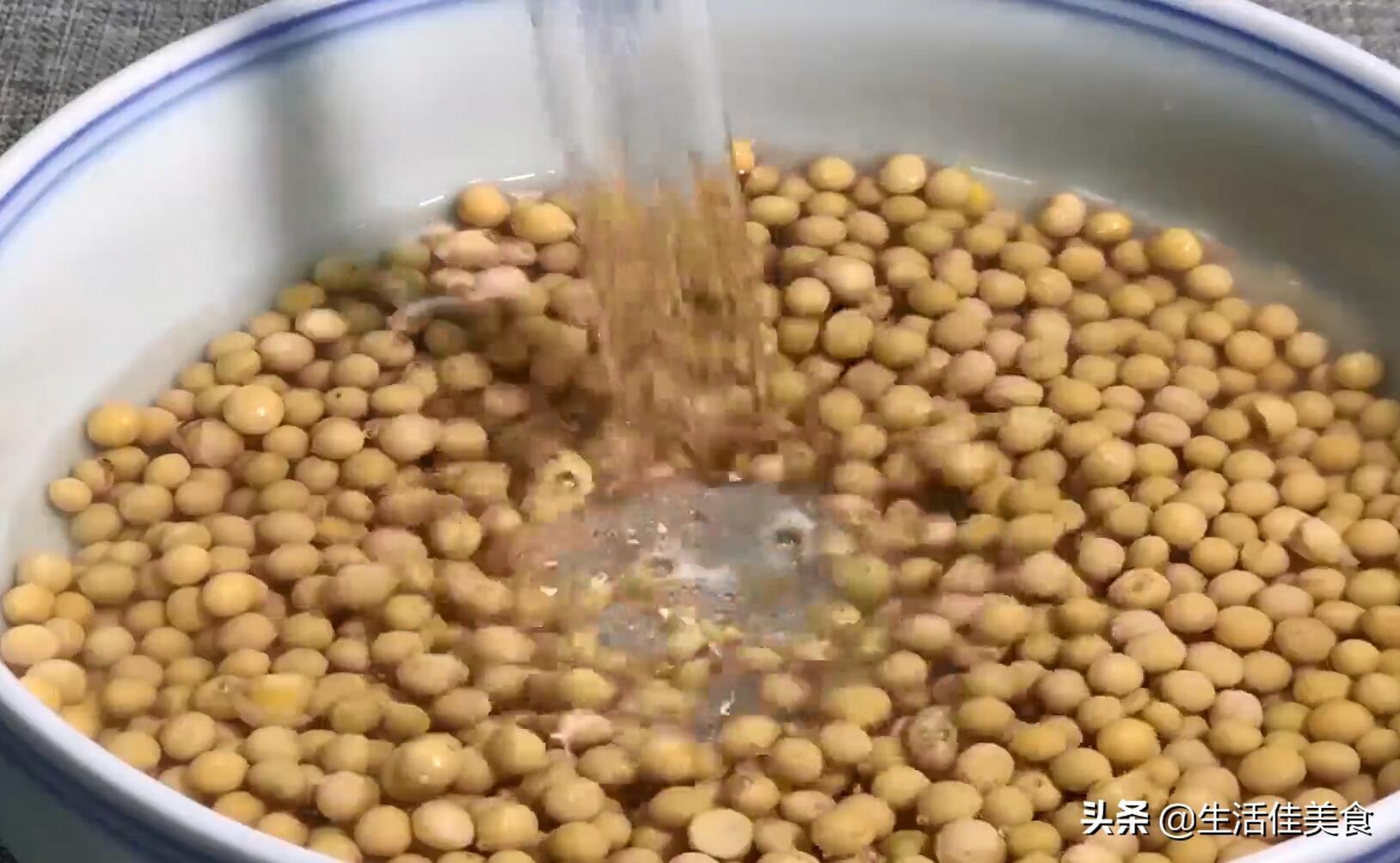第一步:首先准备一斤黄豆,用清水清洗干净,再倒入适量的清水,浸泡一个晚上,将黄豆泡发。