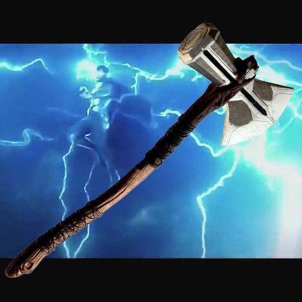 复联3中雷神为打败灭霸,雷神与银河护卫队的格鲁特等人来到了矮人星,矮人族的幸存者艾崔为其锻造暴风战斧,也称为暴风破碎者或雷神战斧,战斧与雷神之锤一样采用仙宫金属材料乌鲁,打造过程相当凶险,雷神在暴风战斧锻造时,将自己置身在中子星几千亿度的高温之下,用手启动熔炉,险些丧命。树人格鲁特把还在燃烧的,未成形的斧头连接在一起,然后自己砍断了手臂当做斧柄,暴风战斧才打造成功。