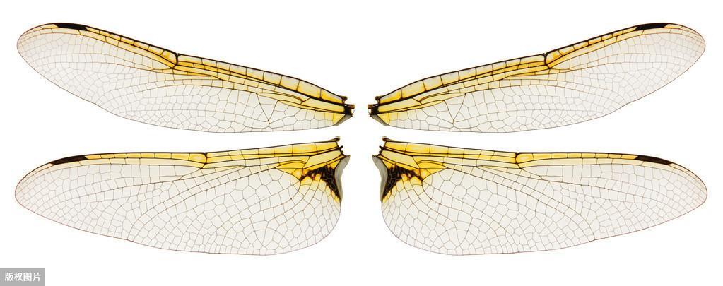 其中最重要的自然要数它们的飞行器官——翅膀。蜻蜓的翅膀是独一无二的,薄而轻的翅质重量只有0.005克,每秒却可振动30-50次,蜻蜓的前翅和后翅尺寸相似,且各自可以单独进行动作摆动,两对翅膀以不同周率,一上一下地振动飞行,这种能力让它可以用在空中划出一个8字,让它在飞行过程中作出静止,旋转,前进,退后等复杂的飞行动作。蜻蜓的每一片翅膀前缘的上方,都有一块加厚的深色角质层——翅痣,这个特殊装置帮助它们消除飞行过程中产生的颤振,让飞行越发平稳。