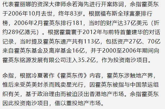 霍家争产案曝光霍英东遗产细节,法官认为案件太复杂60天也审不完