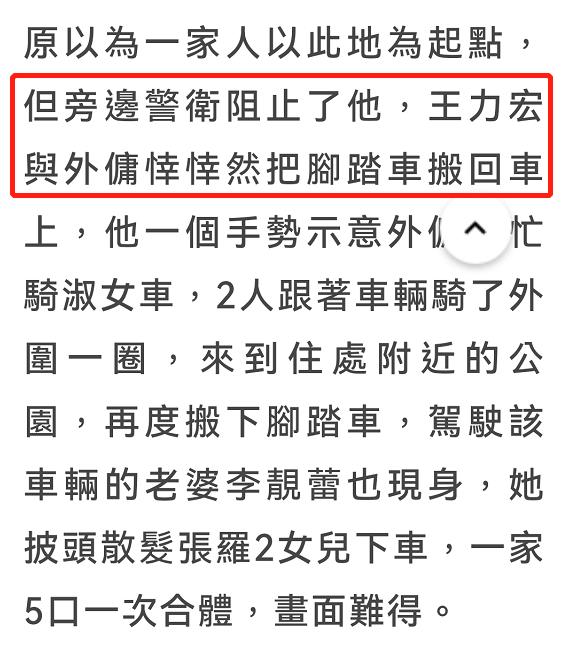 当天,王力宏和妻子李靓蕾带着三个孩子前往家附近的绿地公园兜风。