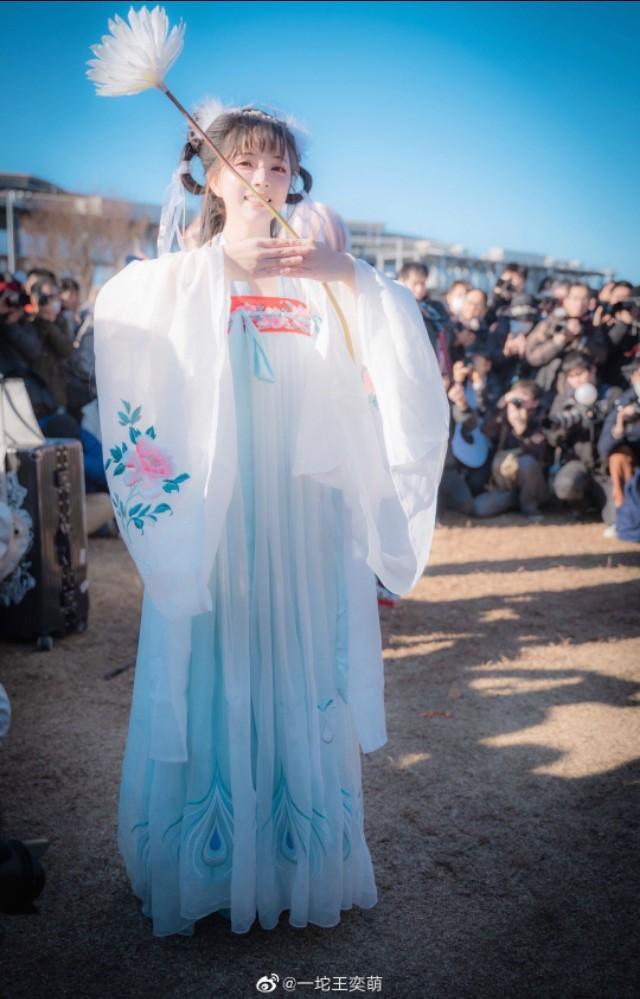 另外最让我感动的就是奕萌说过这样一句话“我有一个梦想,就是想让我们的汉服走出国门。”她不仅是这么说,也是这么做的。在日本的C97漫展上,唯一一个穿着汉服,行着作揖礼的女孩。