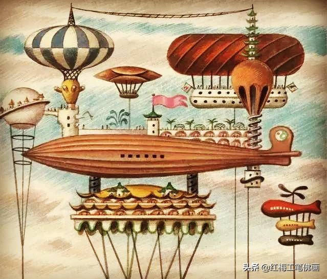 张光宇,对就是那个宫崎骏喜欢的漫画偶像,宫崎骏动画里的“移动城堡”,简直是张光宇40年代创作漫画中“梦得快乐城”的姊妹版。还有宫崎骏《天空之城》飞艇,不知是不是灵感来自另一个民国漫画家艾中信《未来天空的交通》飞行器图?