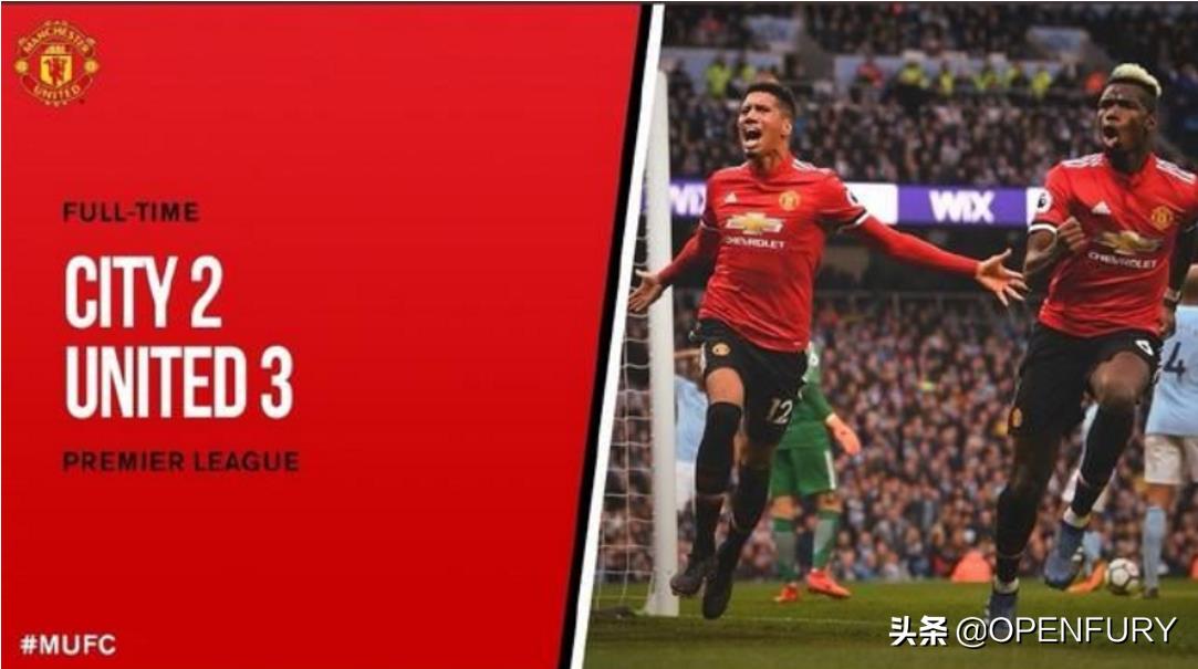 2017/18赛季英超第33轮,曼市德比战役打响,曼联客场对阵曼城,上半场,主队孔帕尼和京多安分别建功,曼城取得两球领先,曼城一个赛季来强大的控场统治力展现的淋漓尽致,本场比赛似乎已无悬念。下半场伊始,穆里尼奥调整战术,博格巴在第53分钟和55分钟先后打入两球,斯莫林在第69分钟打入反超及锁定胜局的一球。最终比分3:2,曼联在落后两球情况下上演熟悉又陌生的惊天逆转。