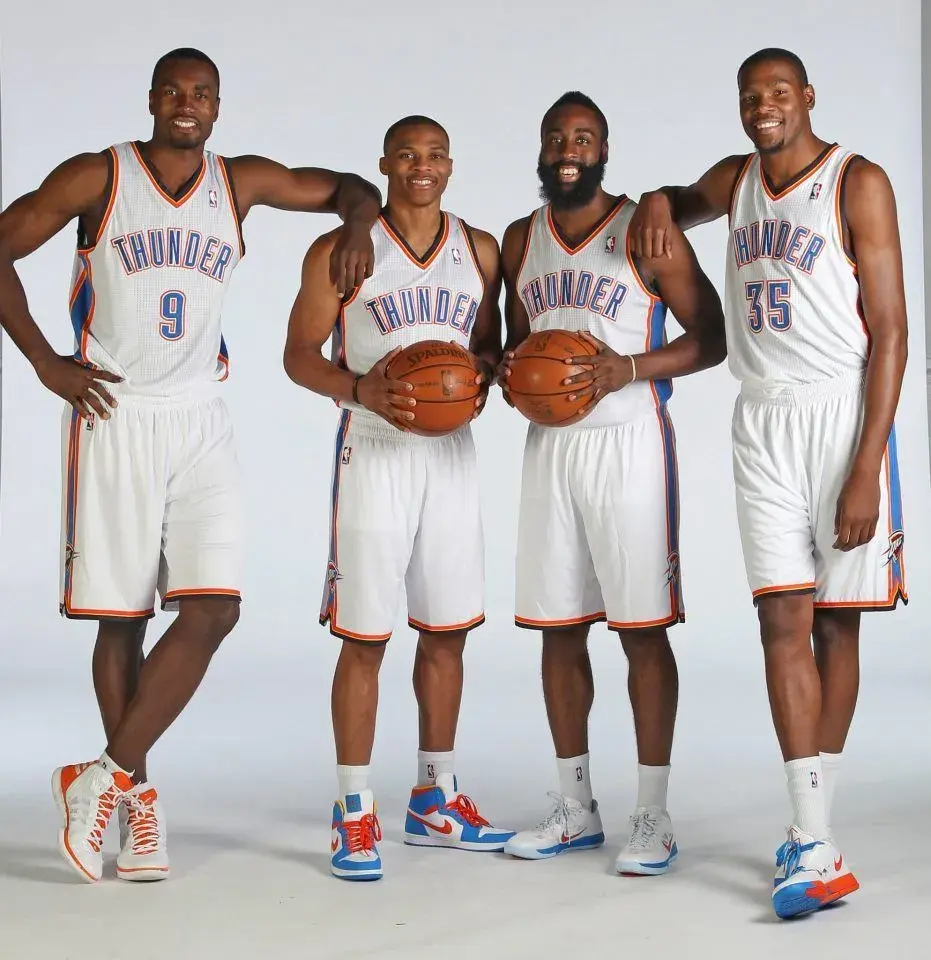 在雷霆队徽更替的全新纪元,一股前所未有的青春风暴在俄克拉荷马城迅猛掀起。以杜兰特、威斯布鲁克、哈登和伊巴卡组成的“雷霆四少”,犹如篮球界的飓风,迅疾刮起了一场震撼联盟的雷霆风暴。2012年一举挺进总决赛,震撼了整个篮球界。那一年的总决赛之旅,雷霆四少虽未能问鼎总冠军,但他们的英勇奋战与无限潜能激起了无数球迷的遐想与期待。败而不馁的他们,虽憾失桂冠,却也仿佛在每个篮球迷心中埋下了一颗种子,昭示着未来无限的可能性和更伟大的成就。那一次次激烈对决的画面,不仅记录了他们的成长与磨砺,更点燃了大家对雷霆四少未来称霸联盟的美好憧憬。