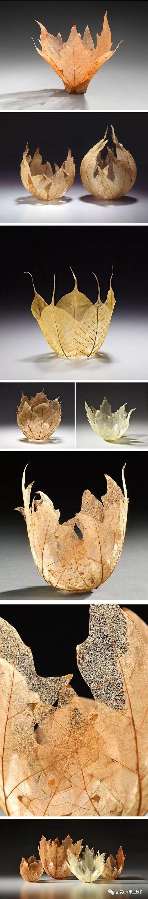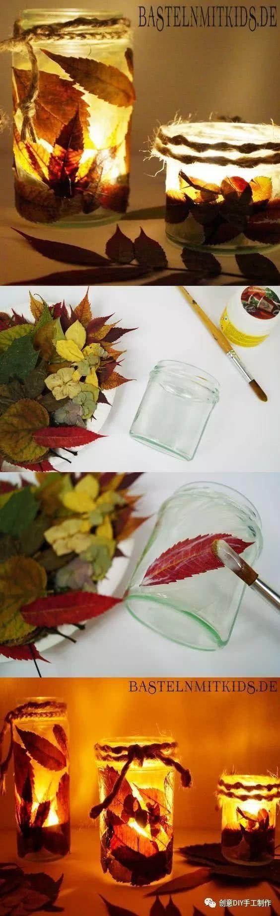 用枯叶制作个性烛台,简单、美观、实用,浓浓秋意。