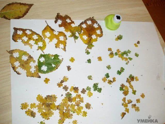 材料准备:落叶,剪刀或打花器,彩纸,画笔,胶水等。