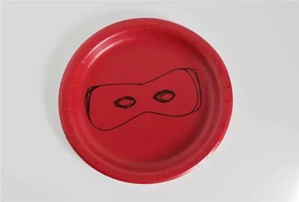 1、先在纸盘上画出面具眼部的雏形,小心地用剪刀剪下来。