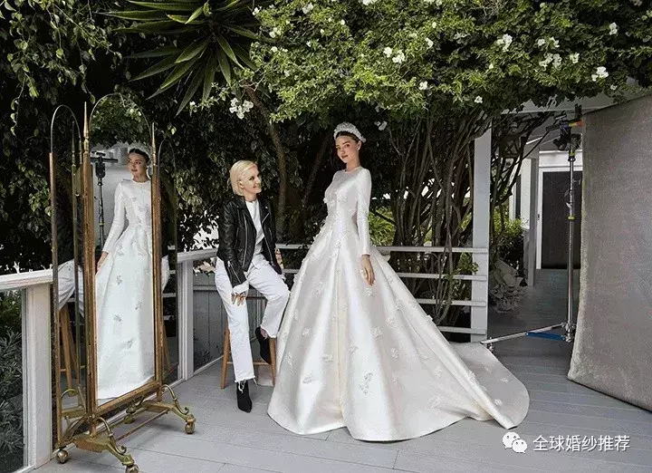 很多女星结婚都很喜欢选择Dior家的婚纱。比如可儿,她这件也是全缎面的,优雅高贵。