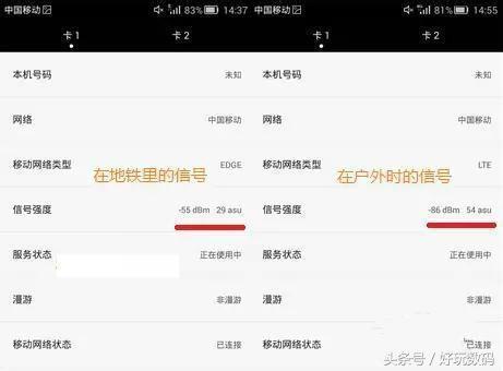 其实状态栏这竖条格数是手机厂商定义的,不能完全代表信号的确切信息,你还可以看专业的信号强度dbm。