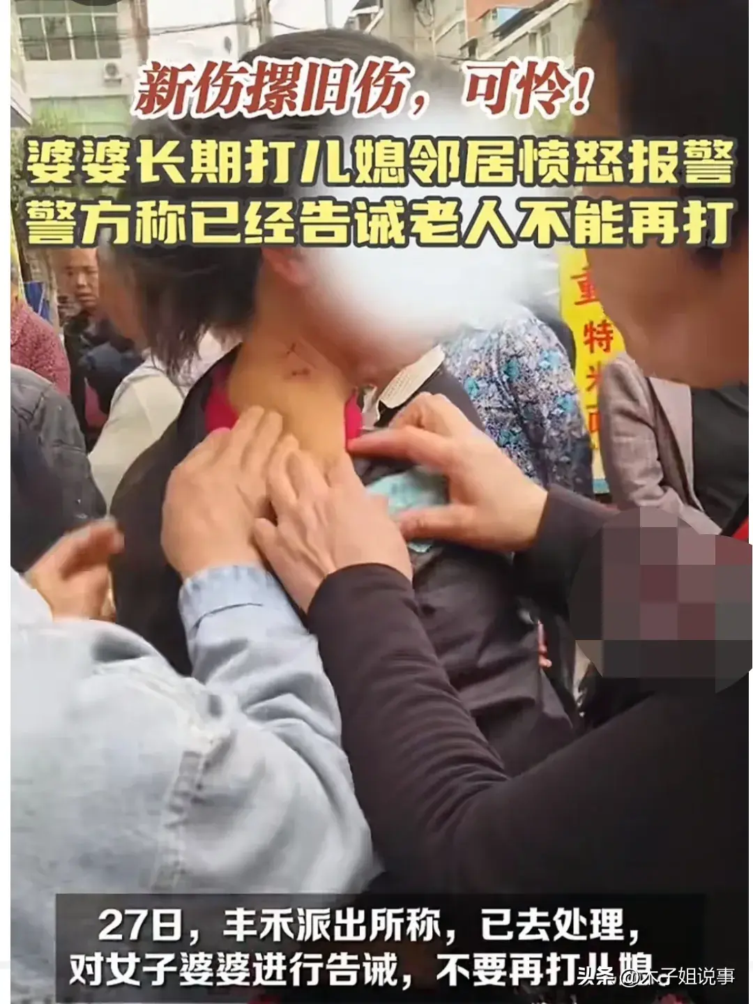 视频里,热心路人查看儿媳妇被打的伤情,结果发现其婆婆的行为相当狠毒,儿媳妇脖子上,后背上,新伤旧伤叠加在一起,就没有一处完好无损的地方,让人看着特别心疼。