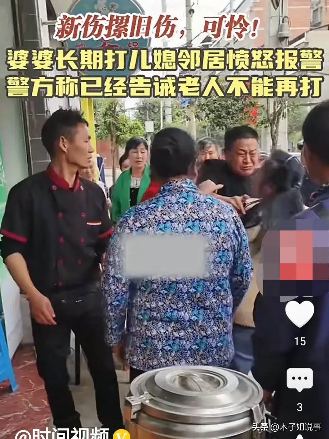 路人为儿媳妇抱不平,直接报了警。当地警方赶到,对婆婆进行了告诫,不要再打儿媳妇。