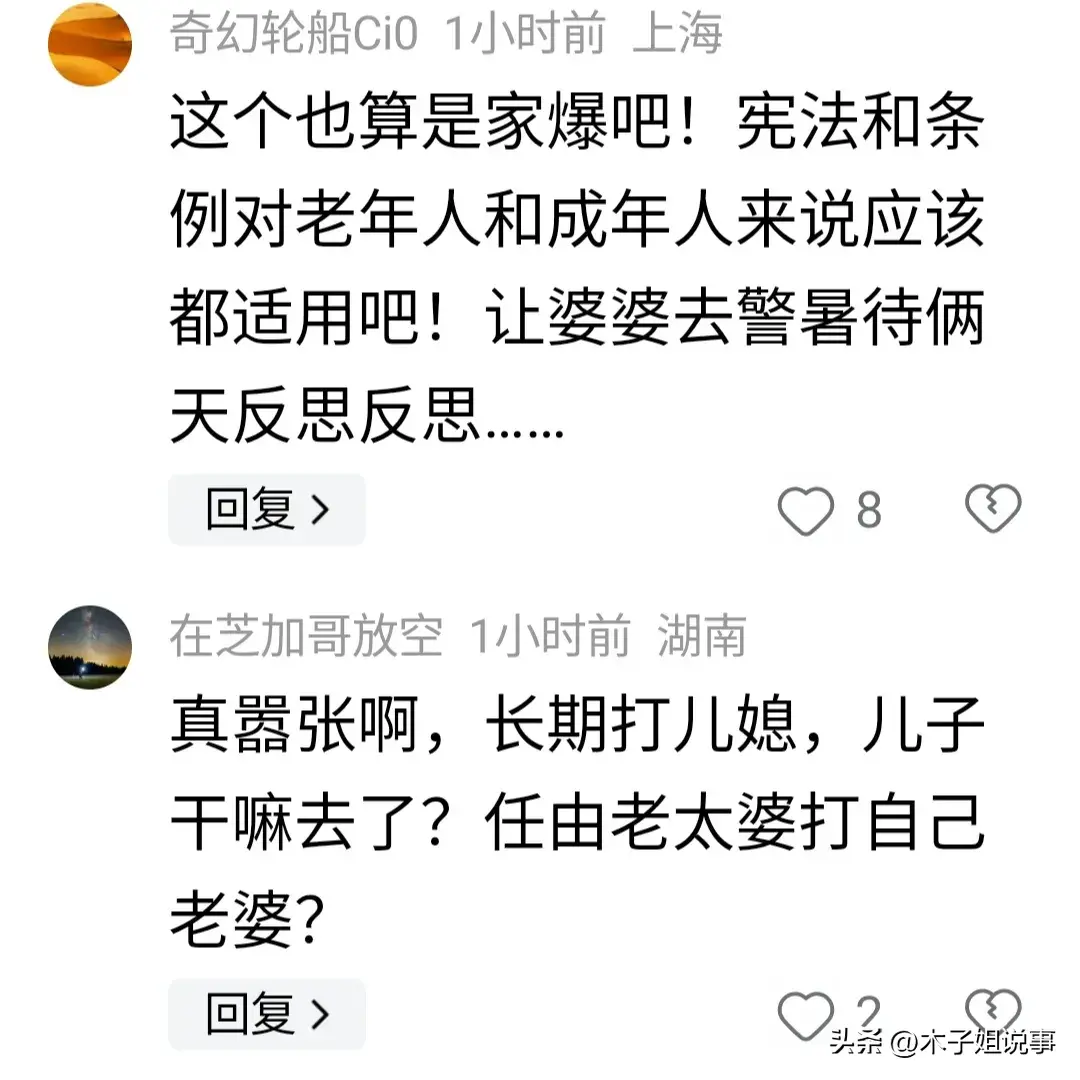 这也算是家暴吧!宪法和条例对老年人和成年人来说应该都适用吧!让婆婆去警署待两天反思反思........