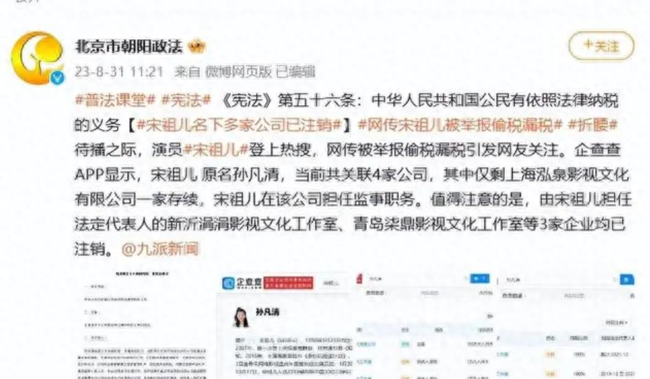 此外,北京市朝阳政法也发表声明,强调公民有依法纳税的义务。这似乎是在为涉案的宋祖儿敲响警钟,让她意识到自己的责任和义务。