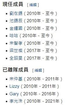 《Running Man》自2010年7月开播,元祖级成员原先还有宋仲基、Lizzy和Gary,3人分别在2010年及2016年宣布退出节目,梁世灿及全昭旻则是在Gary离开后的隔年加入,才组成如今的8人阵容。