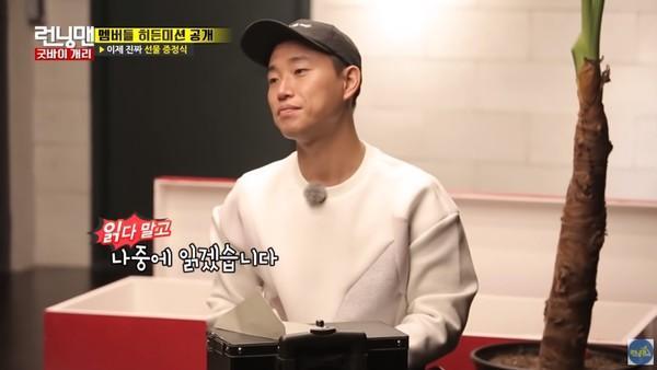《Running Man》日前释出李光洙录影最后一集的预告影片,标题写着「『Goodbye』光洙想传达的最后故事」,他颤抖着声音准备念着手写信,哽咽对大家说「对不起...」便低下头来,镜头也照到一旁的金钟国、宋智孝与梁世灿,有人红了眼眶、有人抿嘴压抑情绪,也有人鼻头已经泛红,预计今晚将会逼哭不少《RM》铁粉。