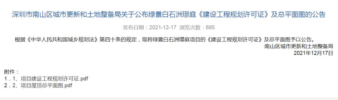 上个月 南山城市更新和土地整备局发布了 “绿景白石洲璟庭” 的总平面图