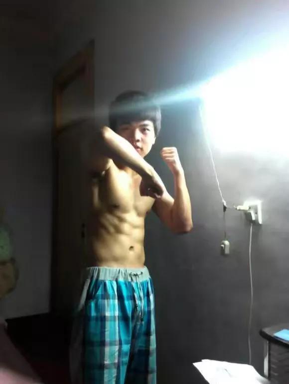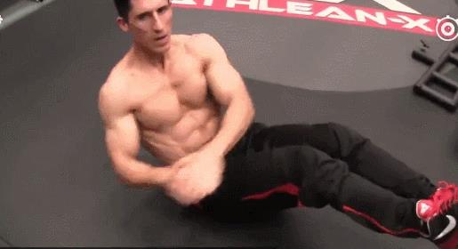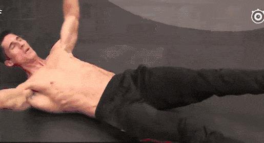 看出来了吗,腹肌已经歪了。