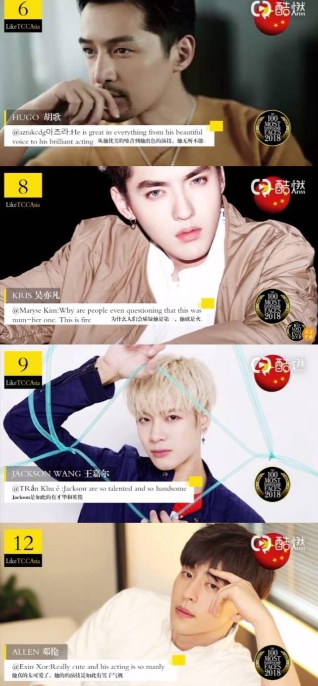 接着胡歌第六,吴亦凡第八,王嘉尔第九,邓论第十二。