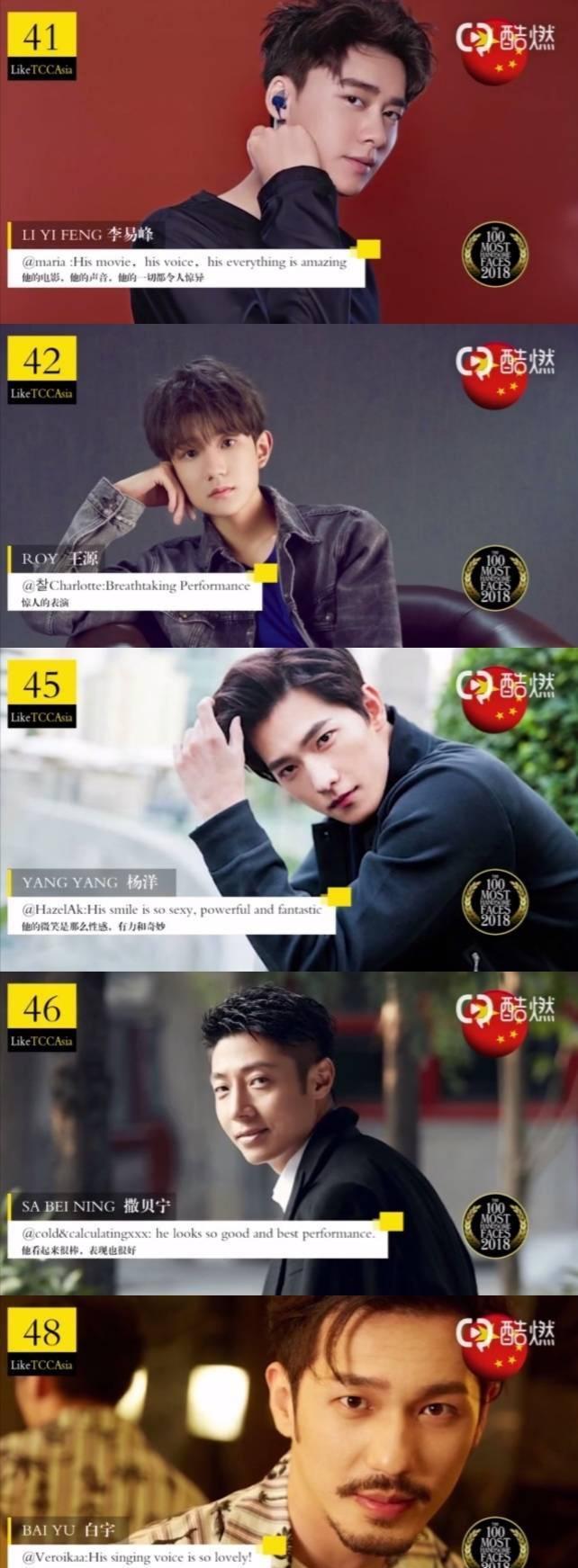 李易峰四十一,王源四十二,杨洋四十五,撒贝宁四十六,白宇四十八。