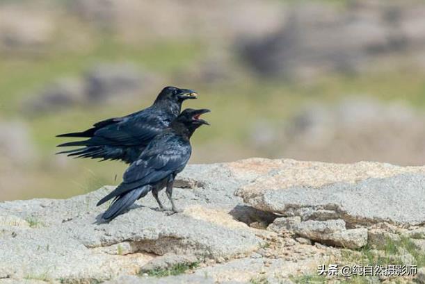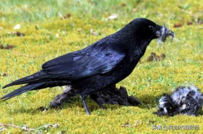 渡鸦(学名:Corvus corax):是一种全身黑色的大型雀形目鸦属鸟类,俗称为胖头鸟。是雀形目中体型最大的鸟类,共有12个亚种。通体黑色,并闪紫蓝色金属光泽;尤以两翅为最显著。喉与胸前的羽毛长且呈披针状;鼻须长而发达,几乎盖到上嘴的一半。虹膜暗褐色;嘴、跗蹠和趾黑色