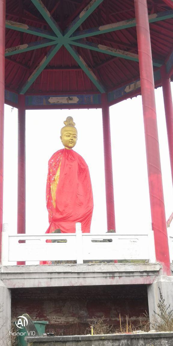 2007年的时候,这里还是一片水泽,当年陶建军用小船将重达一吨的神像安放于此。没有栈桥,当时是怎样把这么重的神像运到指定位置并固定呢?陶建军院长说,他想了很多种方案,最终他打造了一个长4米、高6米的铁皮箱子。先在箱子里装上一半的砂浆水泥,用小船把箱子投放到指定位置,然后再一船一船不停地运送砂浆水泥,直到铁皮箱子沉到水底不再浮起。他清晰地记得,那天下着大暴雨,他和熟识水性的几个工人在水里紧张地忙碌着。铁皮箱子入水沉底后,他一个猛子扎入水底,用手探查铁皮箱子是否放置妥当。发现铁皮箱子西边有些倾斜后,他又拖了两袋干水泥沉入水底把它填平。底座固定后,接下来就是安放神像了。重达一吨的神像被横放在大船上,十几个工人跳进水里把大船拉到底座的附近,因为神像位置确定为“坐南朝北”,工人便在南边用绳索拉起神像,利用神像背后的杠杆撬动,几经波折后,终于将神像扶立在底座正中央的位置。