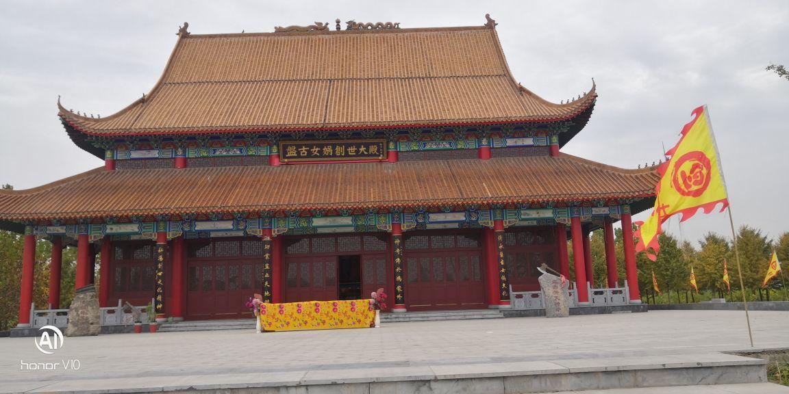 女娲遗址修建的第一座庙叫中皇山盘古女娲庙,是陶建军院长修建的,五间正房大殿,坐落在老百姓世代口传的中皇山中部。这里曾经属于周口监狱五分场的管辖区域。早在上世纪80年代,有关单位在此施工期间,就曾挖掘出汉代女娲碑、补天石和大量女娲城青砖、器皿、瓦片等文物。2003年新监狱启用后,监狱干警和家属陆续搬离,那块地就基本闲置了景区主建筑是盘古女娲创世大殿,大殿采取中国传统的古建筑风格,气势恢弘。大殿座落在盘古女娲庙向北大约200米的地方,大殿前是宽阔的祭拜广场,一条宽约20米的大道把创世大殿与盘古女娲庙连在一起。