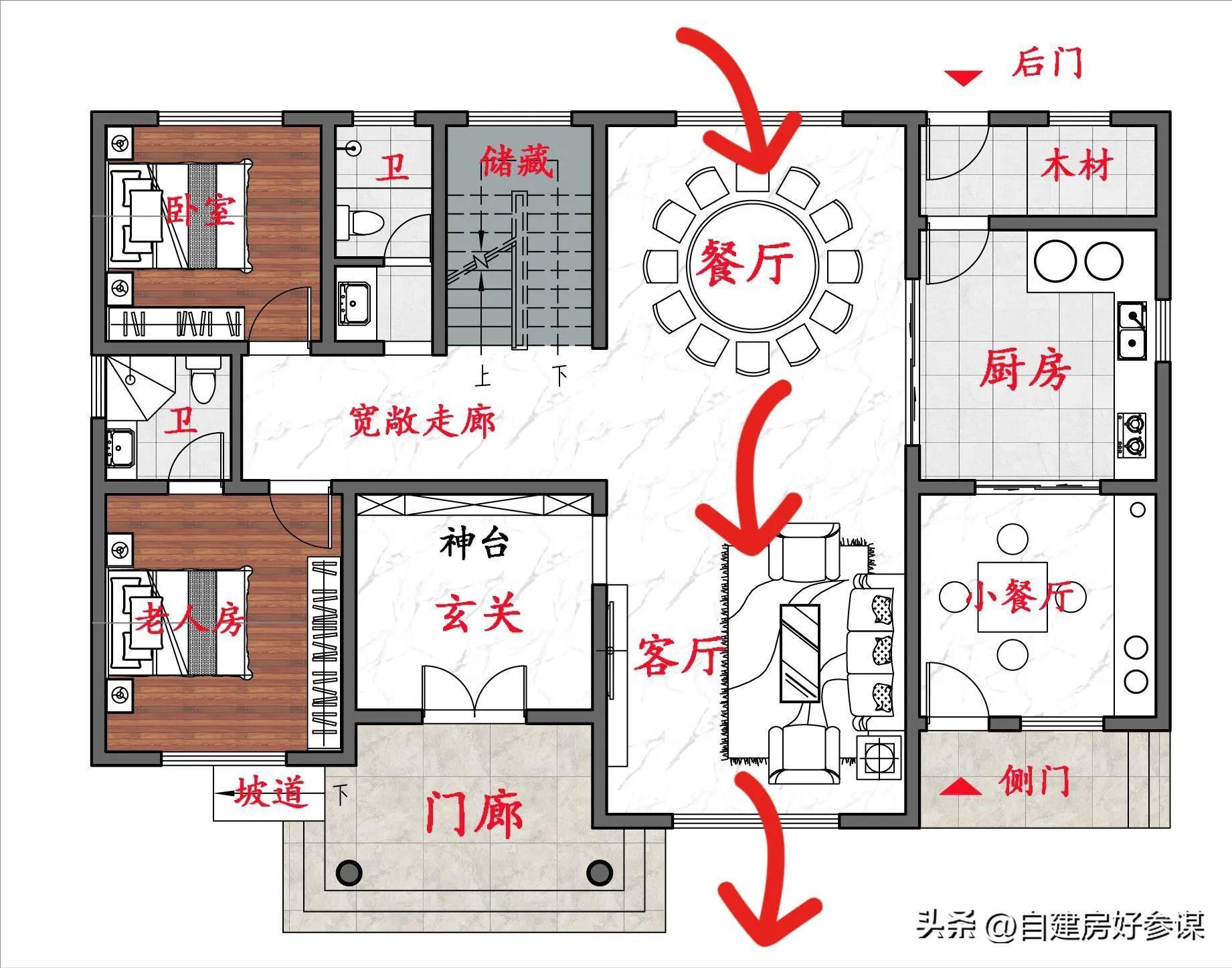 “土灶台+燃气灶”,两全其美的自建房图纸,建议收藏参考