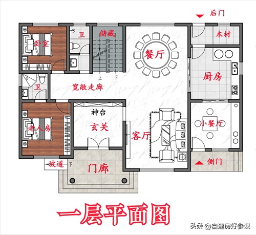 虽然只有一层,但是依然光芒耀眼除了平面功能合理,房屋轮廓也方方正正准备回老家建房的朋友