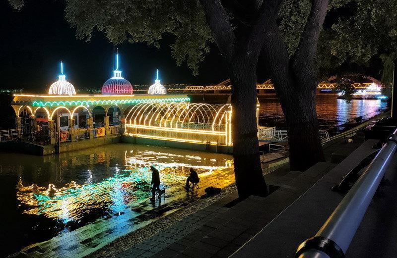 去哈尔滨之前,我曾搜索过主景点,还记下了“中东铁路桥”。搞笑的是,我想当然的以为是在远郊,当时远拍这桥,只是把它当做漂亮桥,而且还以为是一座桥。夜晚拍江边码头,也只是无意中捎带了一点点中东铁路桥,有眼不识泰山。