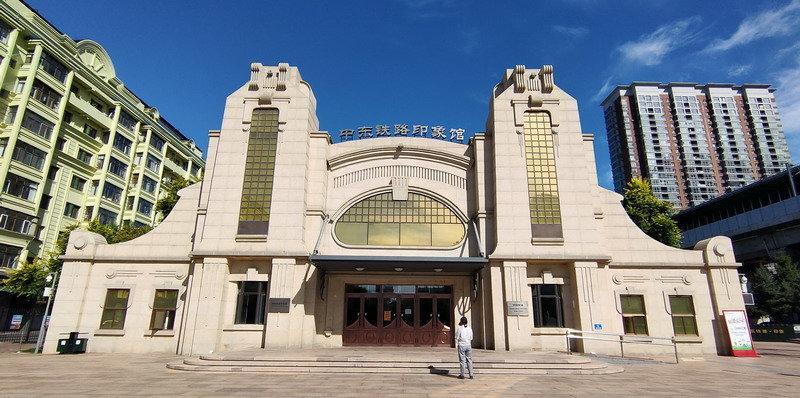 中东铁路印象馆,是仿照老哈尔滨火车站。那段时间,室内展馆都不开放,幸亏露天有些资料与照片。